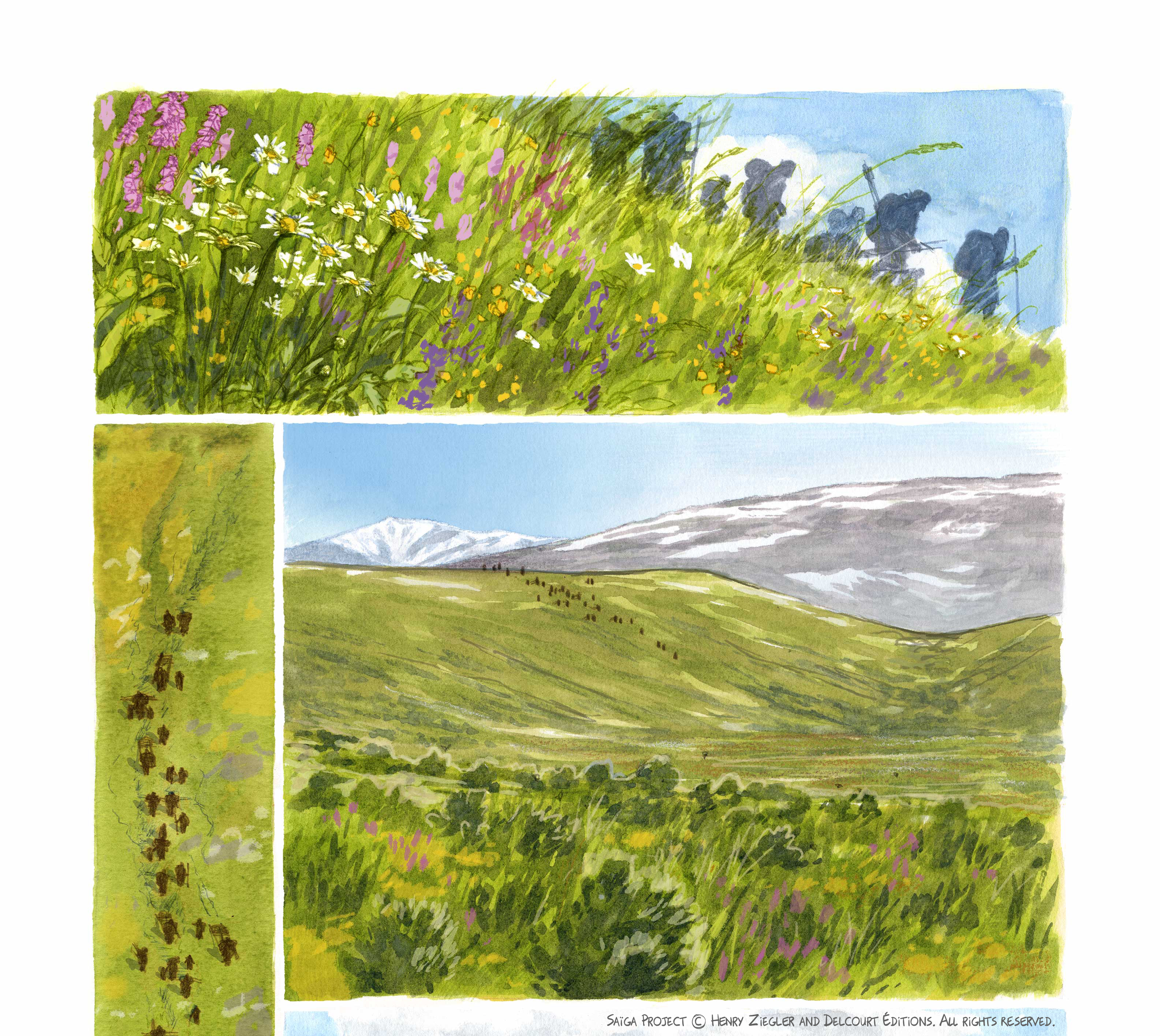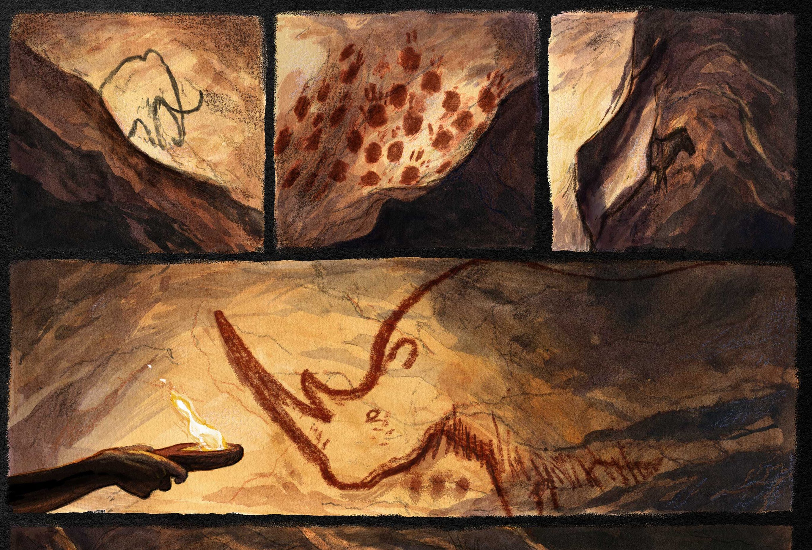 Bienvenue dans la galerie ! Vous trouverez ici pêle-mêle quelques extraits de mes carnets de croquis et de ma BD en cours de création: « Saïga », un récit à la préhistoire!